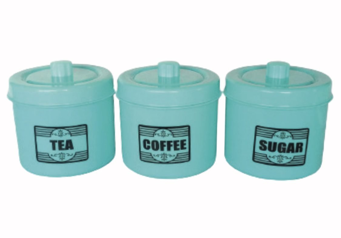 - 3 canisters: Tea, Coffee, Sugar